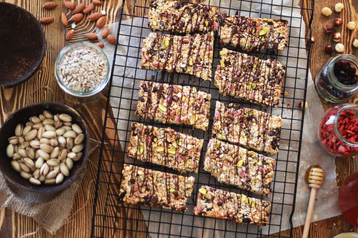 Vegan μπάρες με βρώμη, ρεβίθια και φιστικοβούτυρο