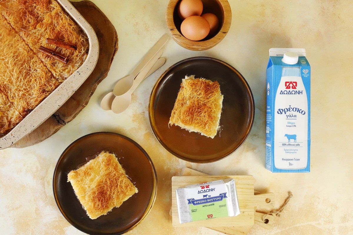 Παραδοσιακό γαλακτομπούρεκο με φύλλο καταΐφι