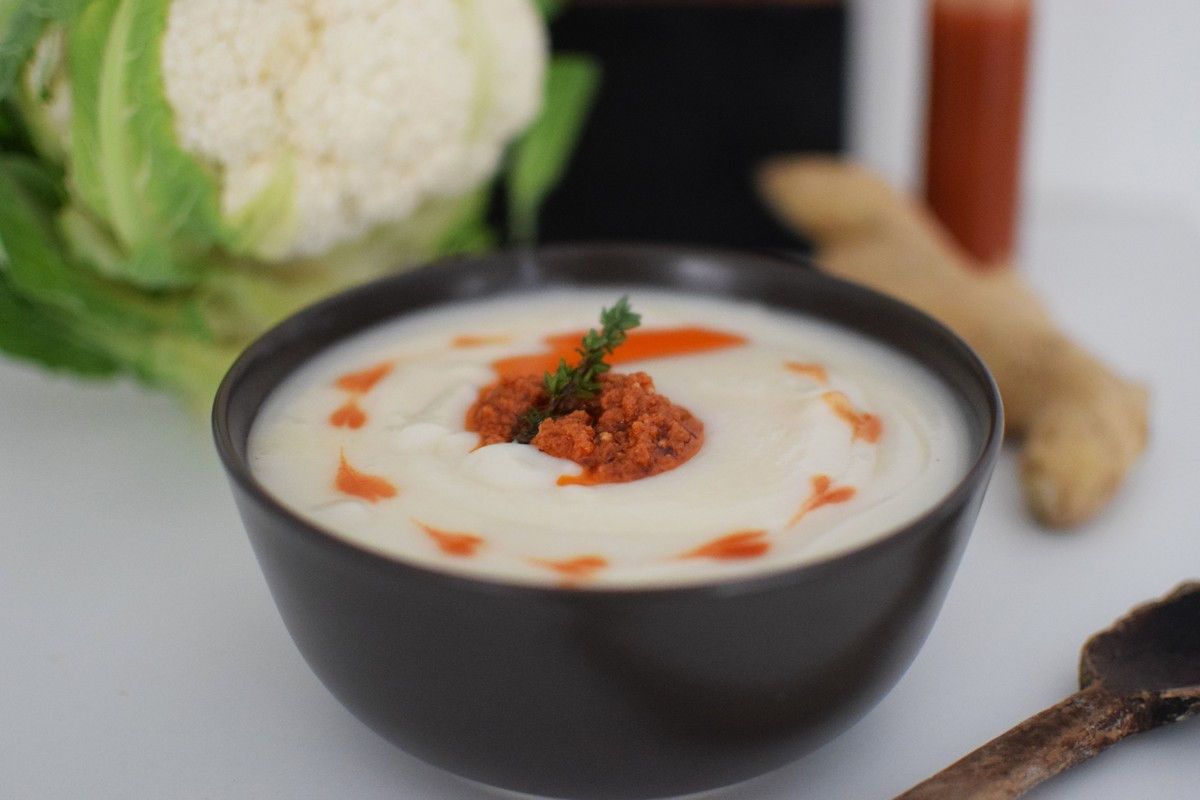 Βελουτέ σούπα κουνουπίδι με τζίντζερ και ταμπάσκο