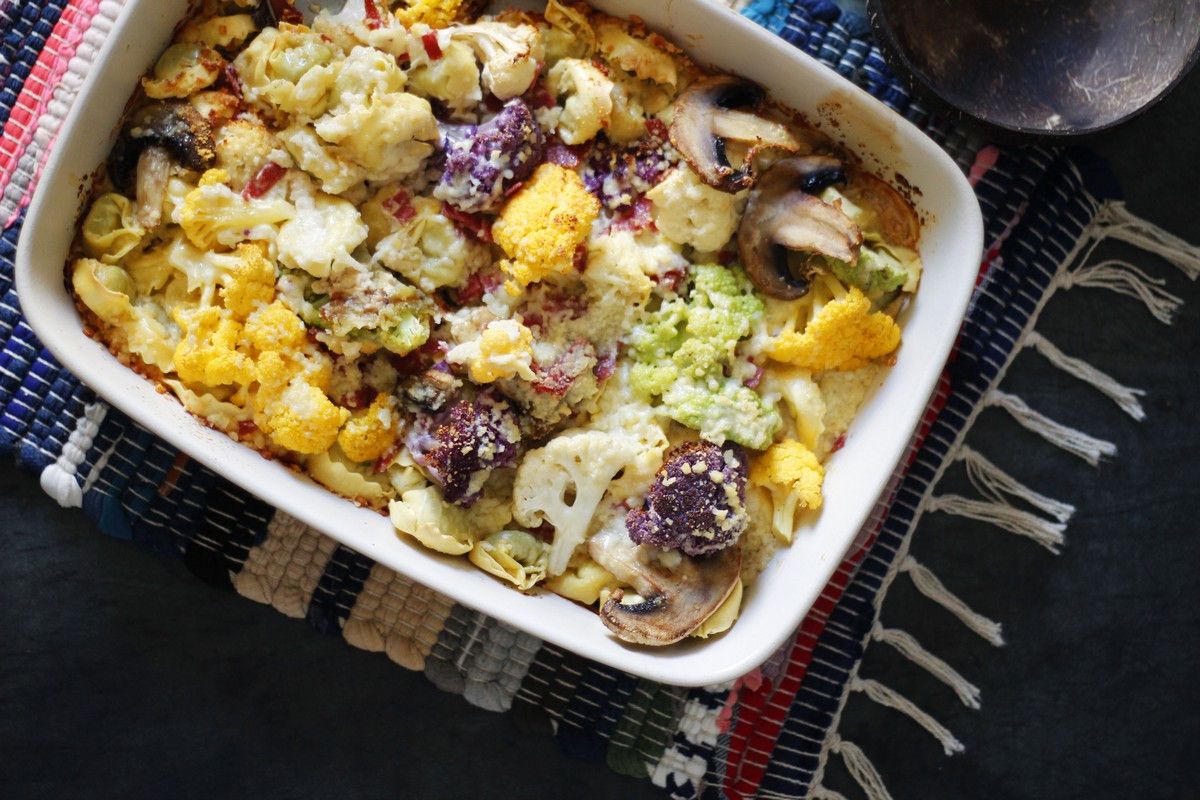 Τορτελίνι ογκρατέν με κουνουπίδι και μπρόκολο