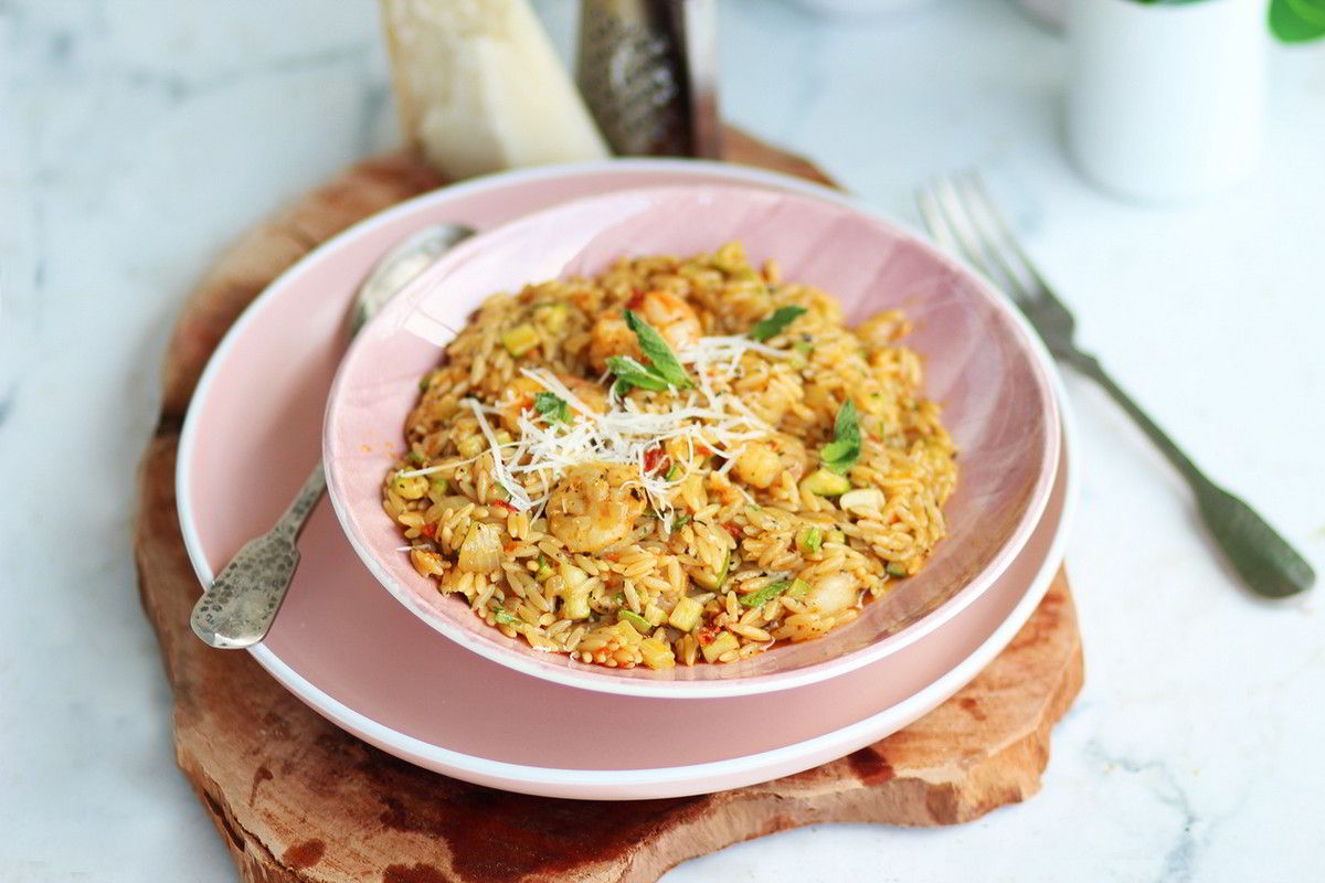 Κριθαρότο με γαρίδες σε ένα μόνο τηγάνι σε 15 λεπτά
