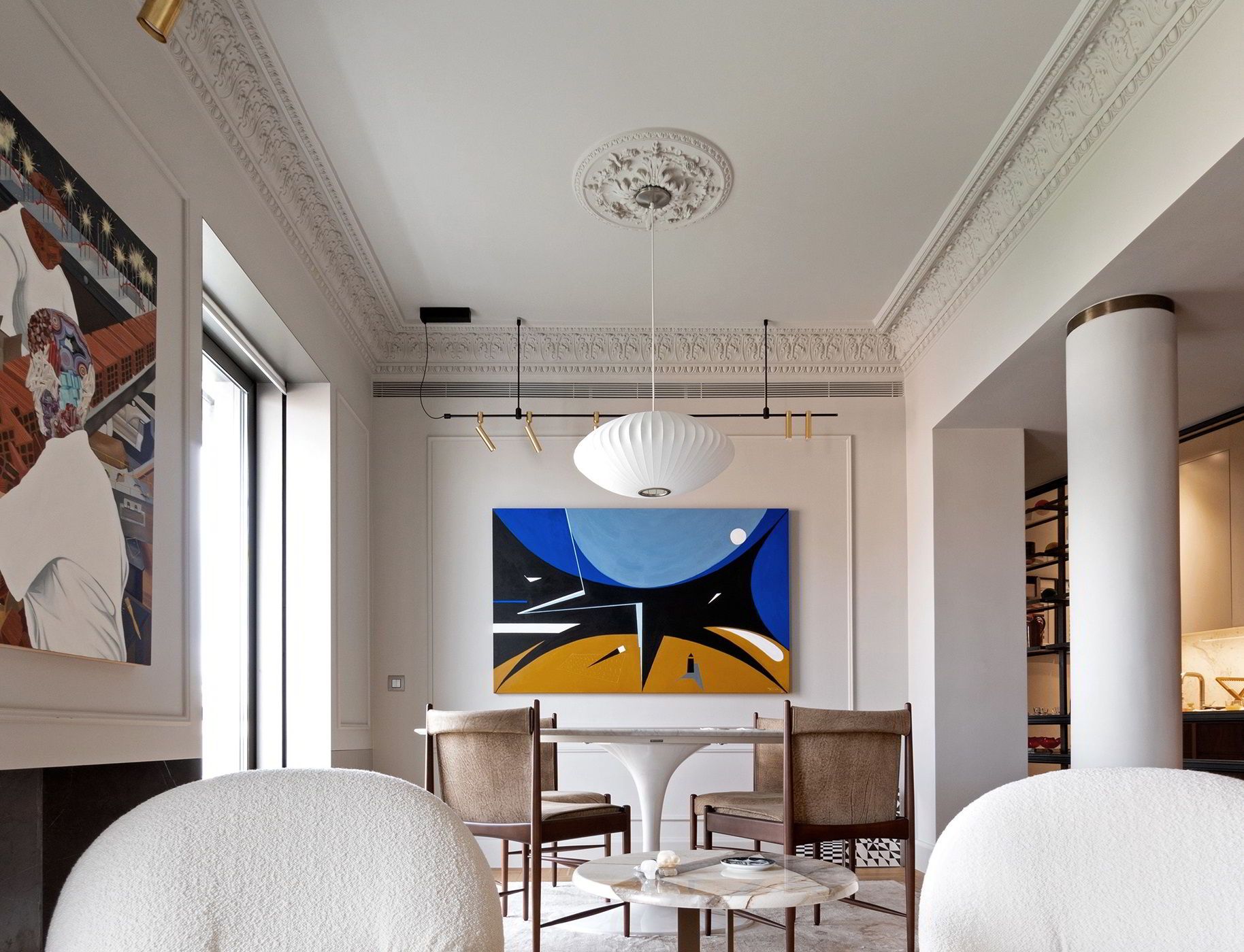 Το ανακαινισμένο διαμέρισμα που συναντούμε σήμερα, βρίσκεται σε ένα κτήριο του μεσοπολέμου, με art deco λεπτομέρειες, στην περιοχή Μετς της Αθήνας.