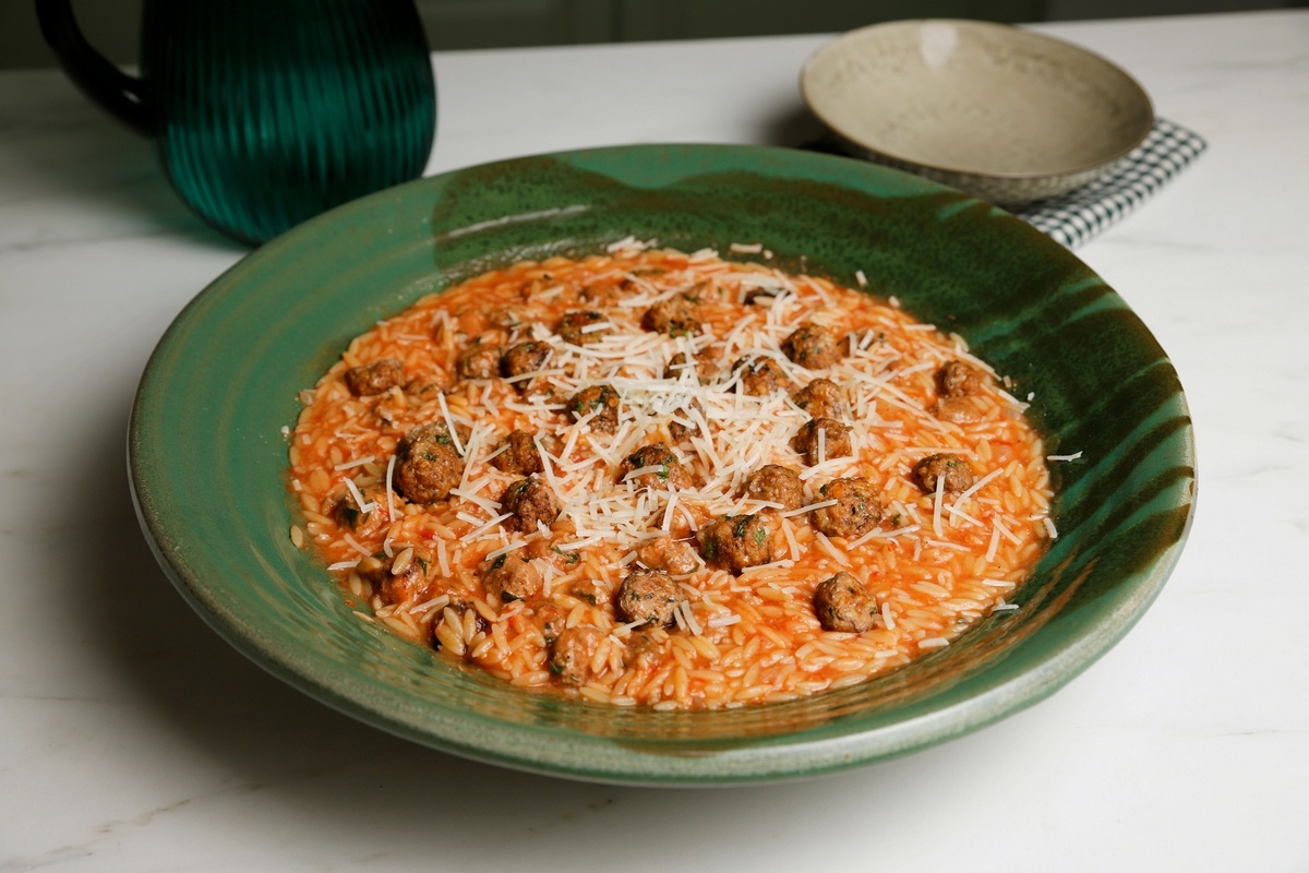 Κριθαράκι μελωμένο με μικροσκοπικά κεφτεδάκια, ελαφριά, θρεπτικά και πεντανόστιμα. Μπορείς να τα ψήσεις στο φούρνο ή να τα περάσεις από το αντικολλητικό τηγάνι με