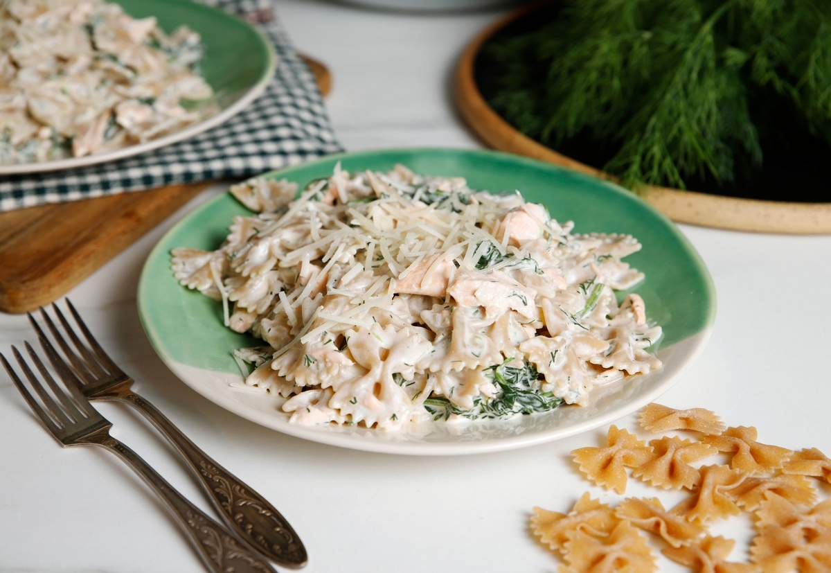 Μια συνταγή ζυμαρικών που λατρεύω για τον εθιστικό συνδυασμό σολομού με άνηθο! Για τη συγκεκριμένη σάλτσα επιλέγω πάντα φιογκάκι Melissa ολικής άλεσης, γιατί παράγεται