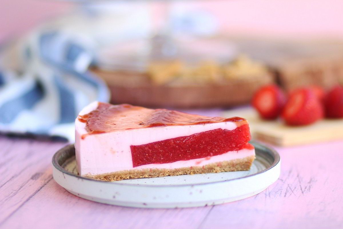 Καλοκαιρινό, ελαφρύ, πεντανόστιμο και πολύ εντυπωσιακό στο μάτι. Σήμερα φτιάχνουμε ένα ζελέ από φρέσκες φράουλες κι έπειτα το μεταφέρουμε στην "καρδιά" ενός λαχταριστού