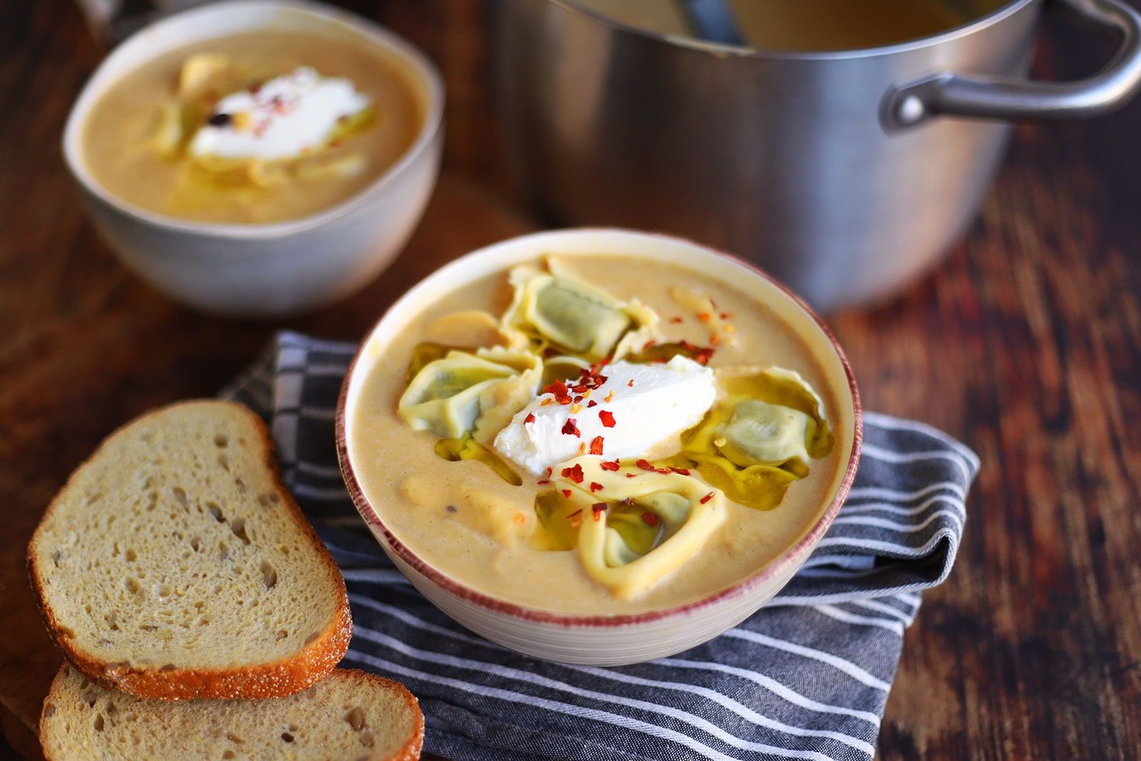 Βελουτέ κολοκυθόσουπα με τορτελίνια