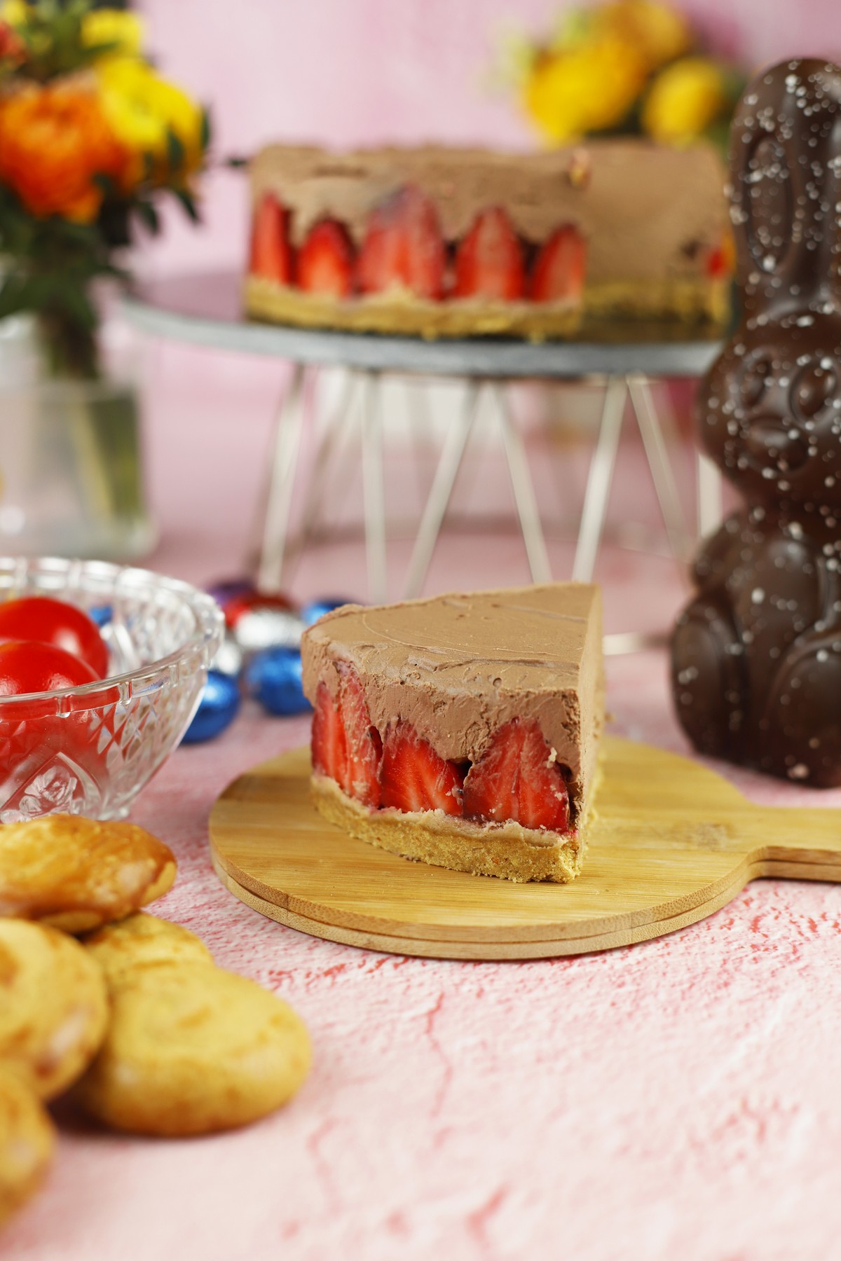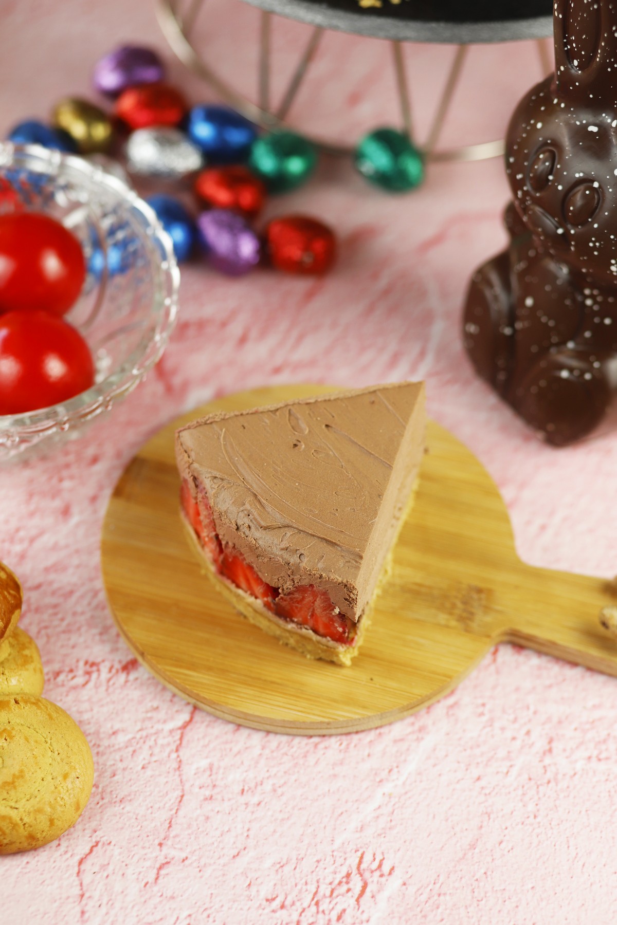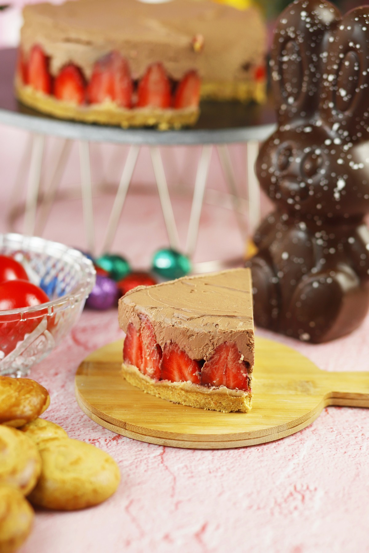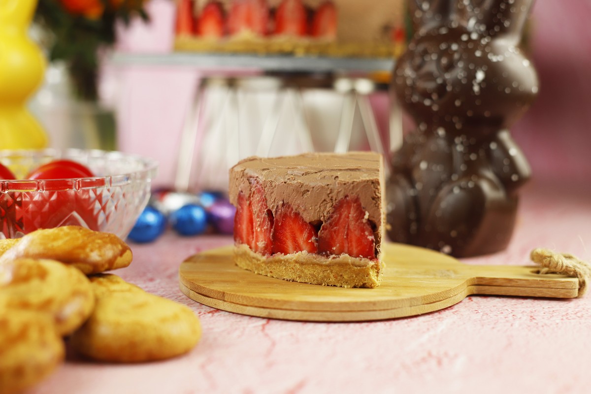 Cheesecake σοκολάτα με φράουλα και βάση από πασχαλινά κουλουράκια