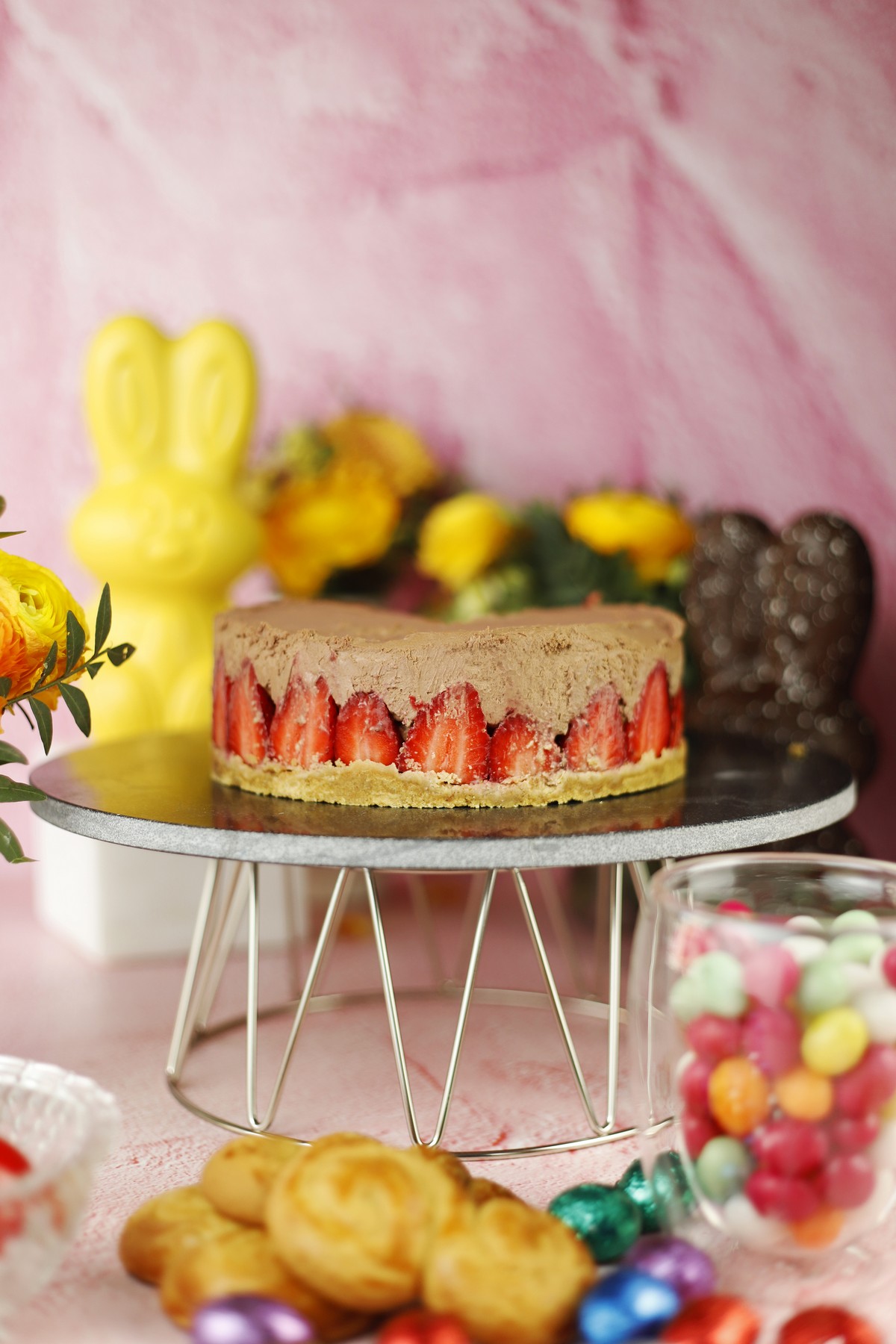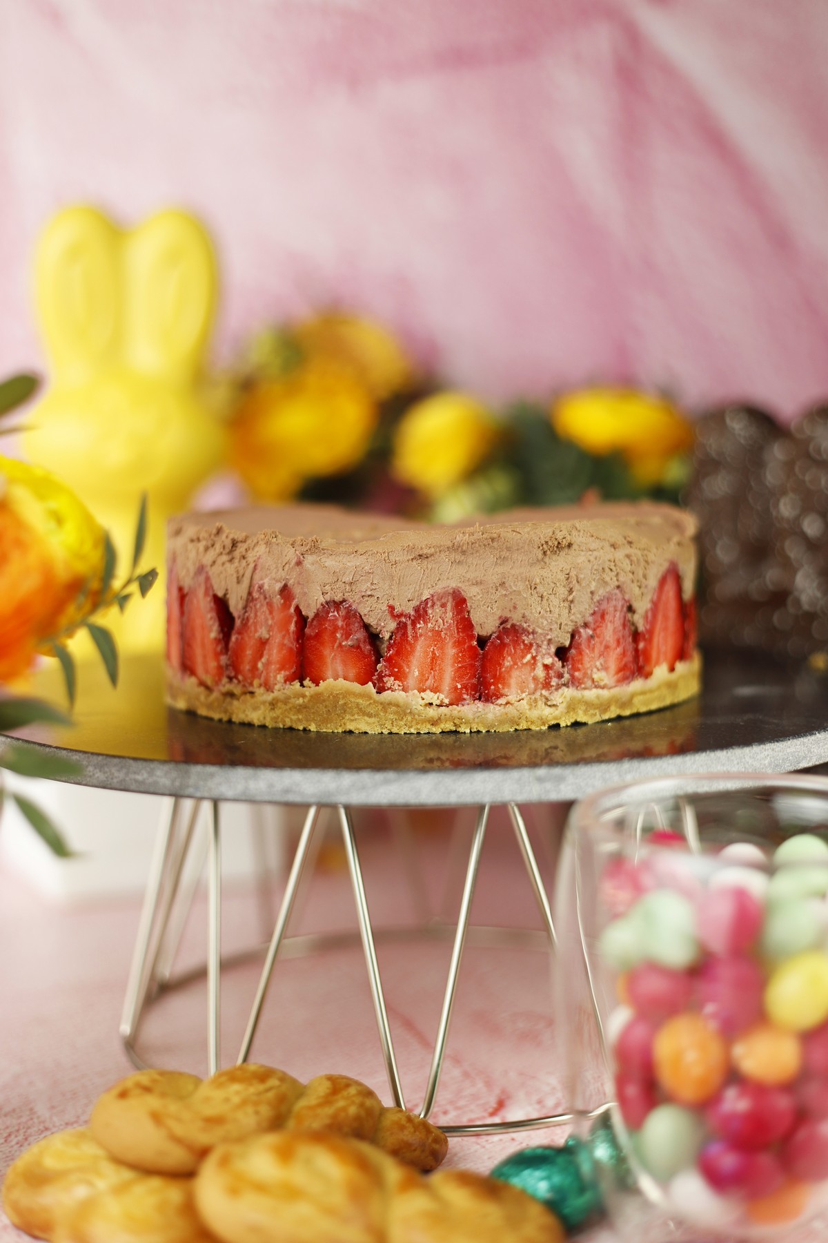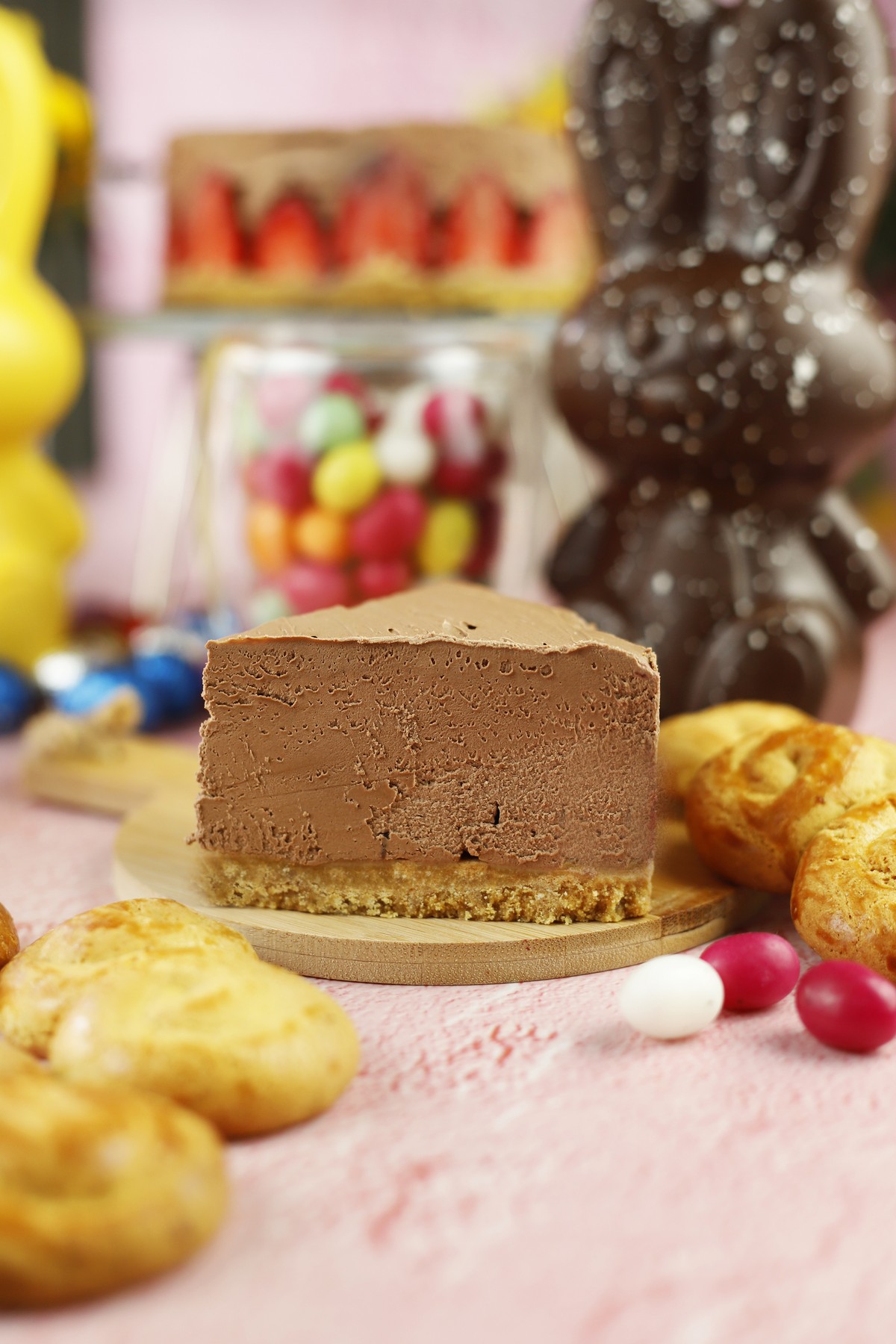 Cheesecake σοκολάτα με φράουλα και βάση από πασχαλινά κουλουράκια