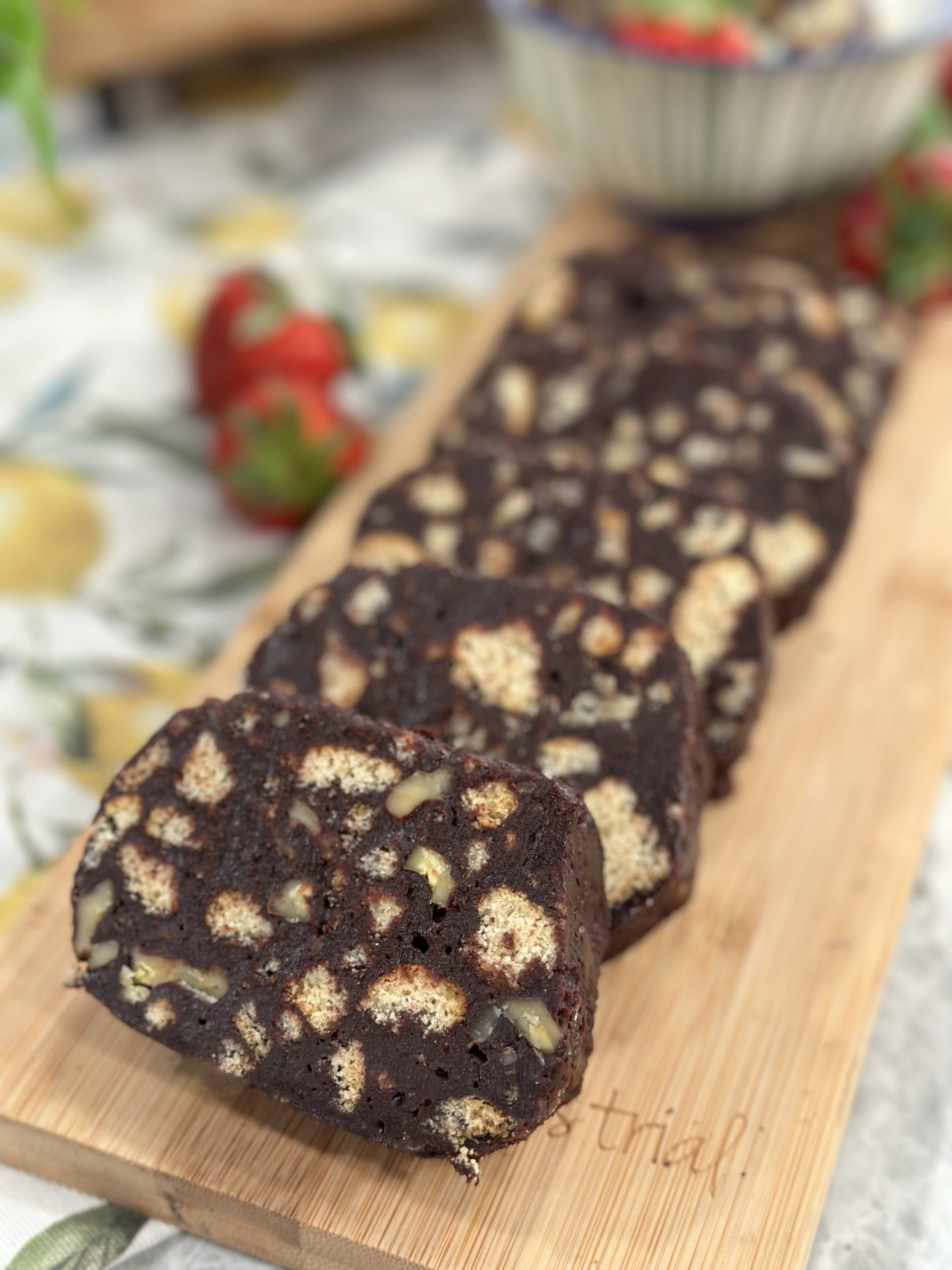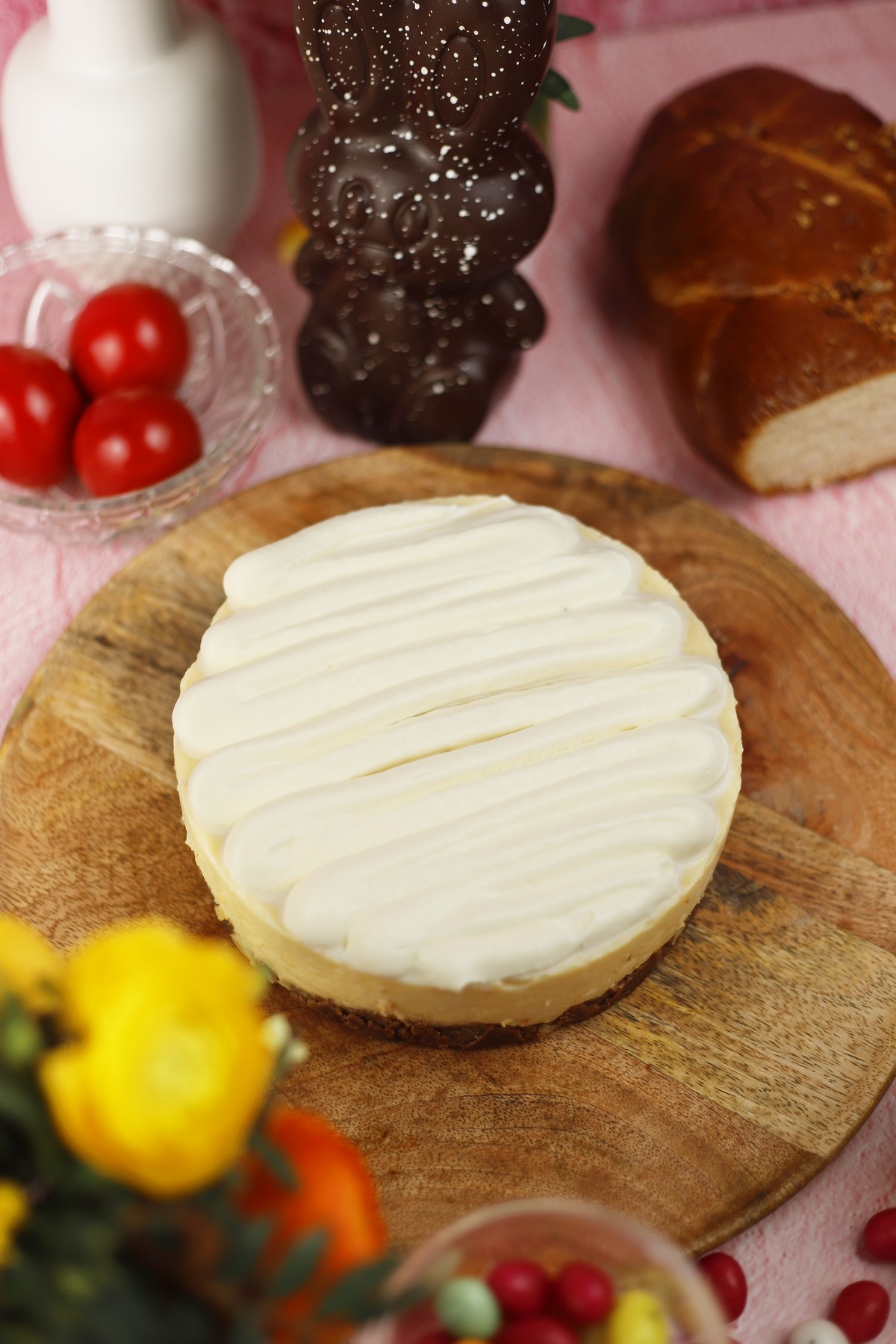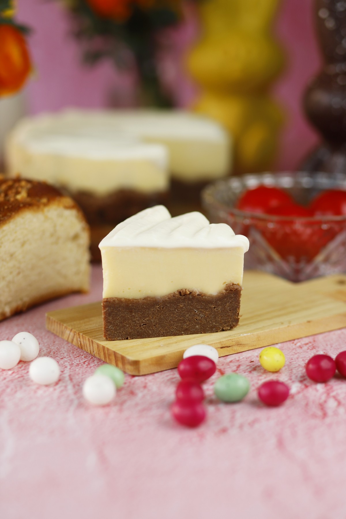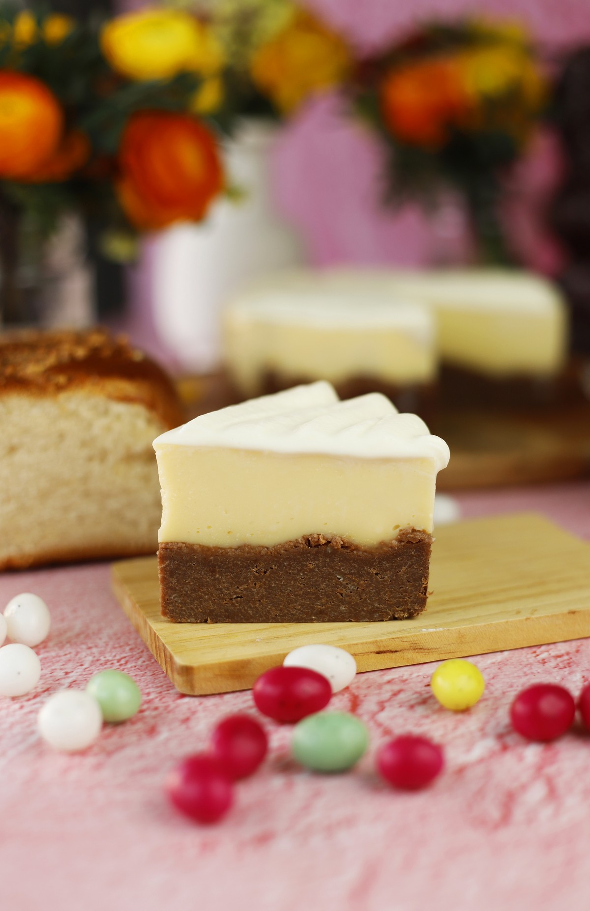 Cheesecake σοκολάτα με φράουλα και βάση από πασχαλινά κουλουράκια