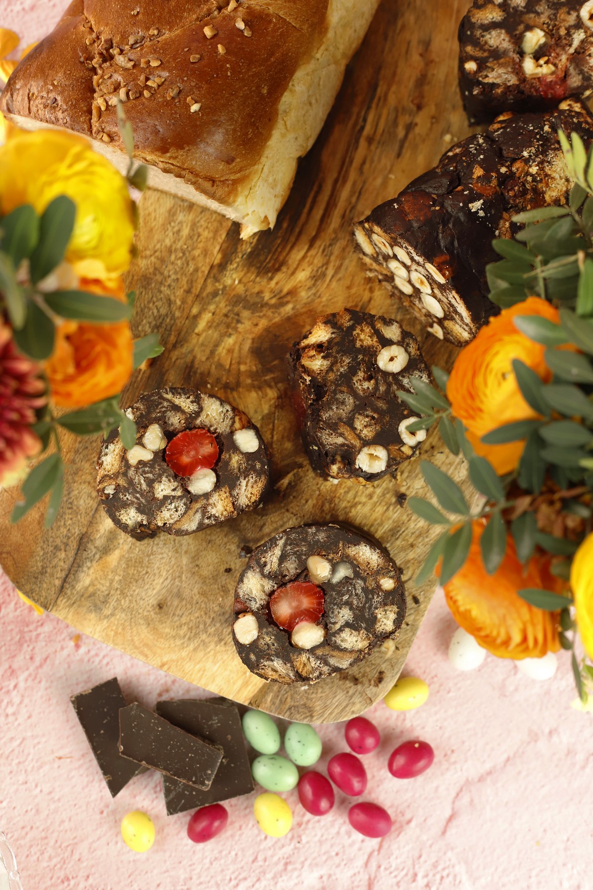 Κορμός σοκολάτας με πασχαλινά κουλουράκια