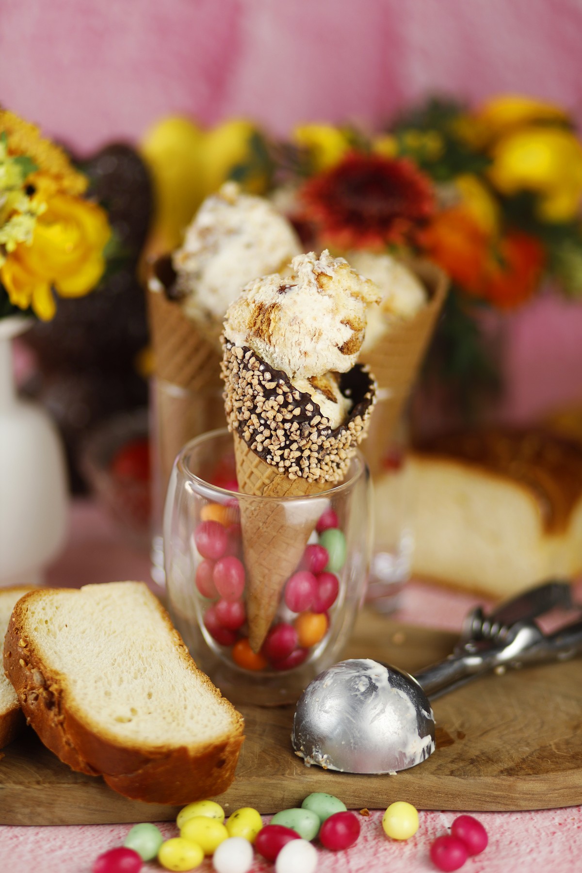 Εκμέκ με βάση από τσουρέκι και σοκολάτα