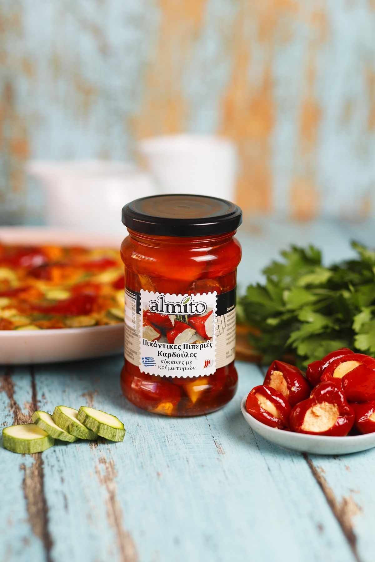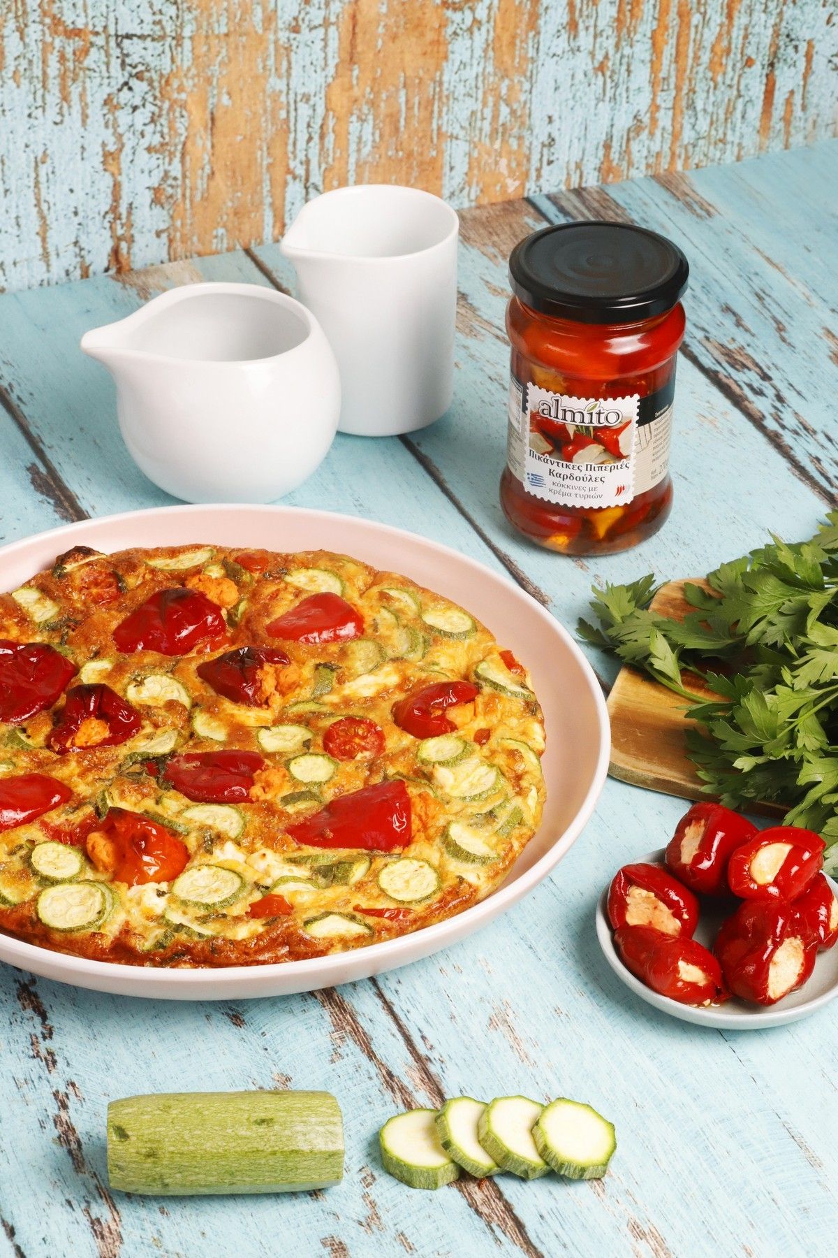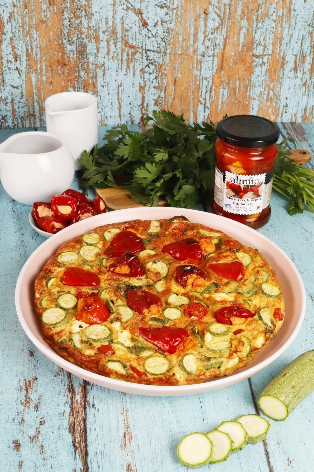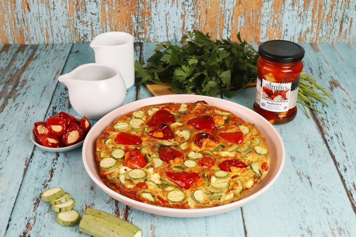 Είναι ένα πιάτο καλοκαιρινό, εύκολο και χορταστικό που φτιάχνεται με ελάχιστο κόπο σε λίγο χρόνο! Σήμερα σου δίνω μια παραλλαγή που φωνάζει “ευκολία” και “νοστιμιά”. Μια ομελέτα με baby κολοκυθάκια και Πικάντικες Πιπεριές Καρδούλες Κόκκινες με Κρέμα Τυριών από την Almito.  Αυτές οι πικάντικες πιπεριές αναβαθμίζουν όποιο πιάτο κι αν προστεθούν από σαλάτες μέχρι σάντουιτς και τάρτες. Προσθέτουν μια έξτρα σπιρτάδα δίνοντας ένα πλούσιο, σχεδόν εθιστικό, αποτέλεσμα.