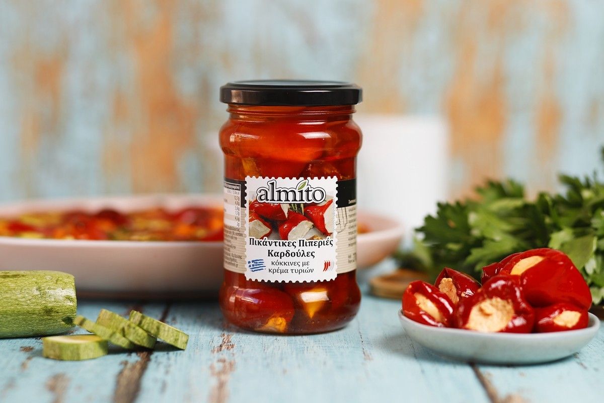 • 1 συσκευασία Πικάντικες Πιπεριές Καρδούλες Κόκκινες με Κρέμα Τυριών, Almito (150 γρ.)