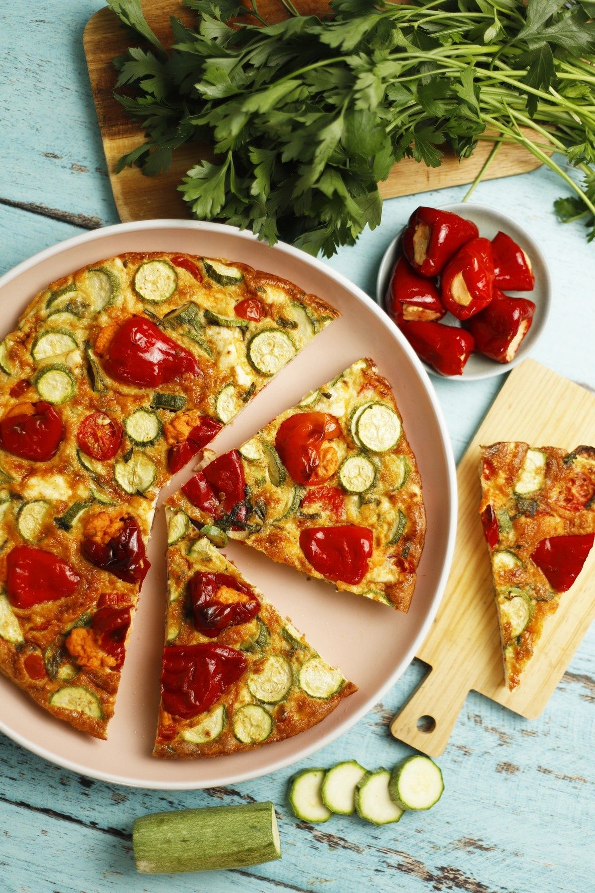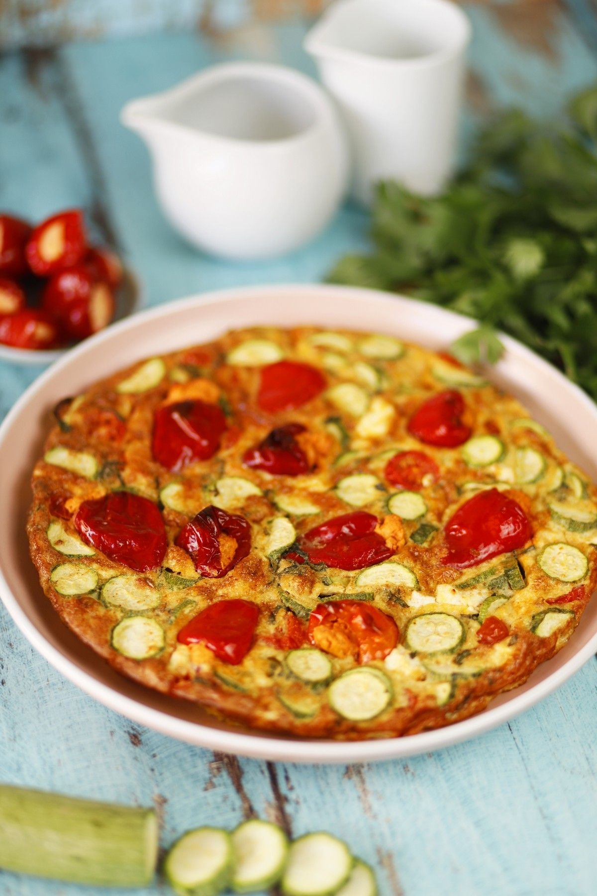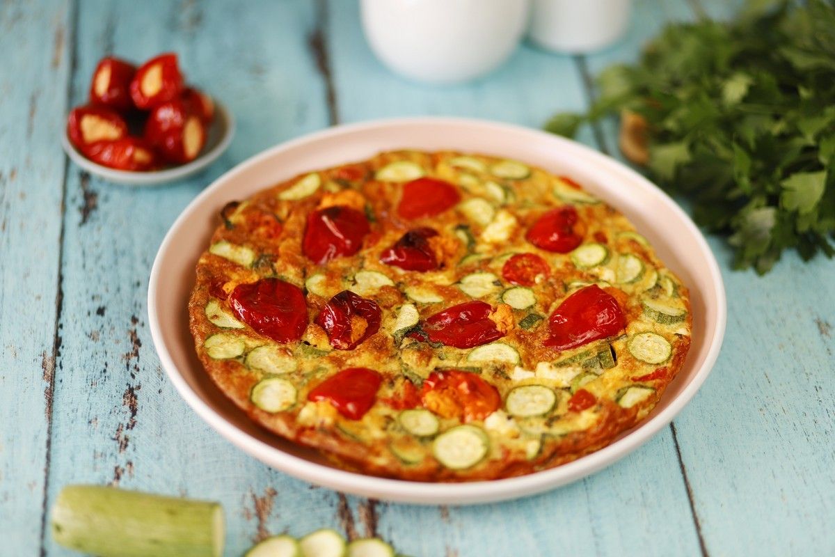 Ομελέτα φούρνου με κολοκυθάκια και πικάντικες πιπεριές