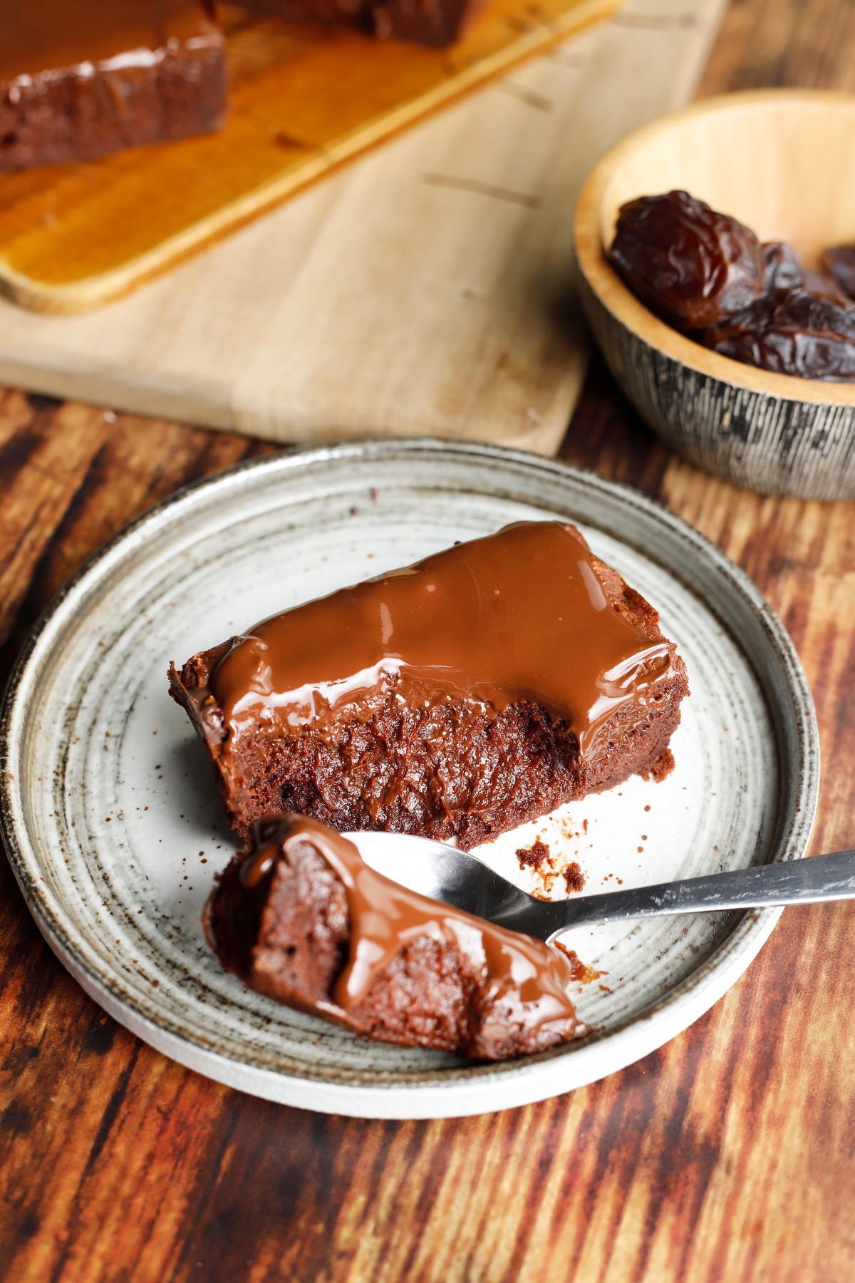 Μια βελούδινη σοκολατόπιτα, ρευστή και υγρή στο εσωτερικό με φυσικό γλυκαντικό (τους χουρμάδες), κακάο και κομμάτια κουβερτούρας χωρίς ζάχαρη. Επιλέγω βασιλικούς χουρμάδες που είναι ζουμεροί και δίνουν τέλεια υφή και γεύση.
