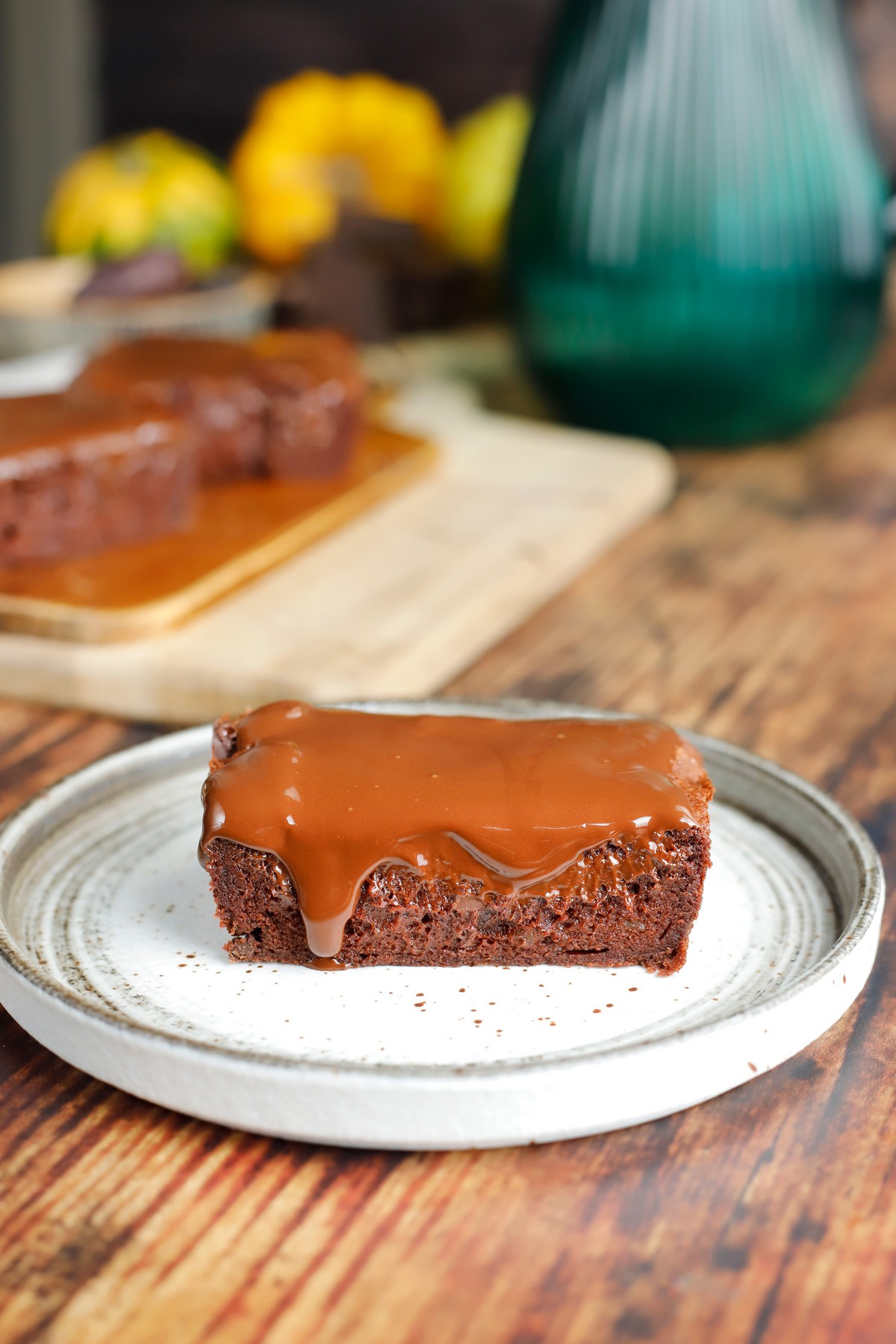 - Περιχύνουμε τη σοκολατόπιτα και σερβίρουμε