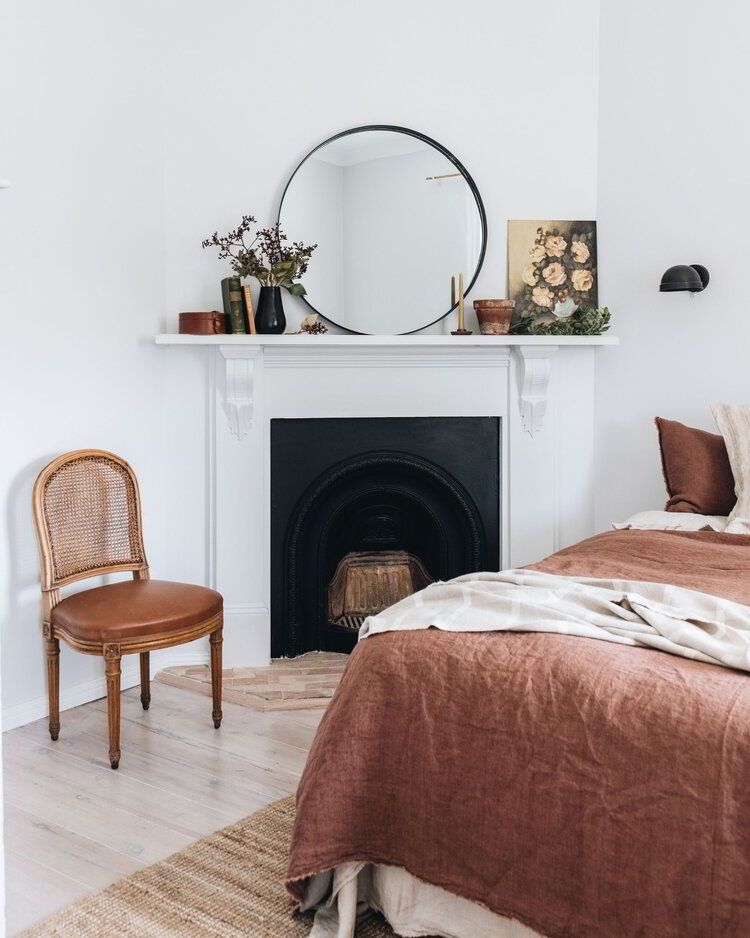 Βασικό κατασκευαστικό υλικό δεν είναι άλλο από το ξύλο που ταιριάζει υπέροχα με την εξοχή, με το λευκό να είναι το πρωτεύον χρώμα της κατοικίας. Οι διατηρημένες αντίκες στο σαλόνι και την τραπεζαρία διατηρούν την ιστορία του συγκεκριμένου σπιτιού, με το μεγάλο τζάκι να ζεσταίνει ακόμα και τα πιο κρύα βράδια του χειμώνα. Το αίθριο με τα φυτά και επίσης ένα ακόμη τζάκι μεταμορφώνεται στο ιδανικό μέρος για δείπνο, ενώ η κουζίνα, στην οποία παρασκευάζεται το φαγητό, είναι αρκετά σύγχρονη και λειτουργική.