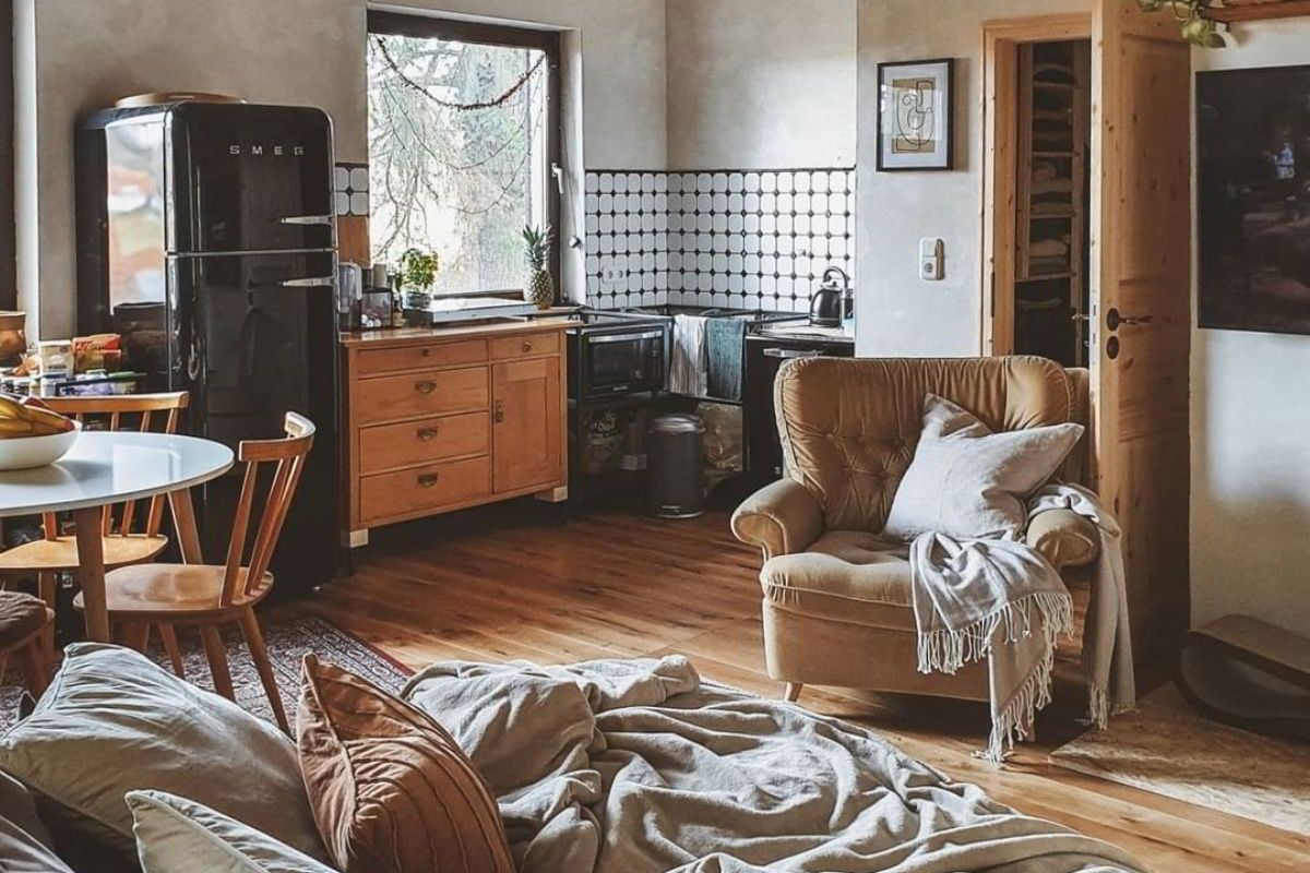 Αυτό το σπίτι καταφέρνει κάτι πραγματικά σπουδαίο! Αν και το συνολικό του εμβαδόν αγγίζει μόλις τα 61 τ.μ., η έξυπνη διαχείριση του χώρου και τοποθέτηση των επίπλων, το κάνουν να φαίνεται πολύ μεγαλύτερο και ευρύχωρο. Σε όλο το σπίτι κυριαρχούν δύο χρώματα: το απαλό γκρι