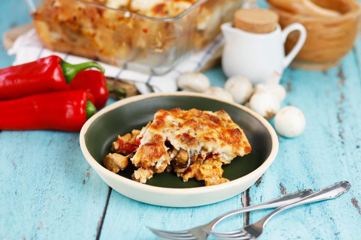 Ογκρατέν με κοτόπουλο και τυρί κότατζ